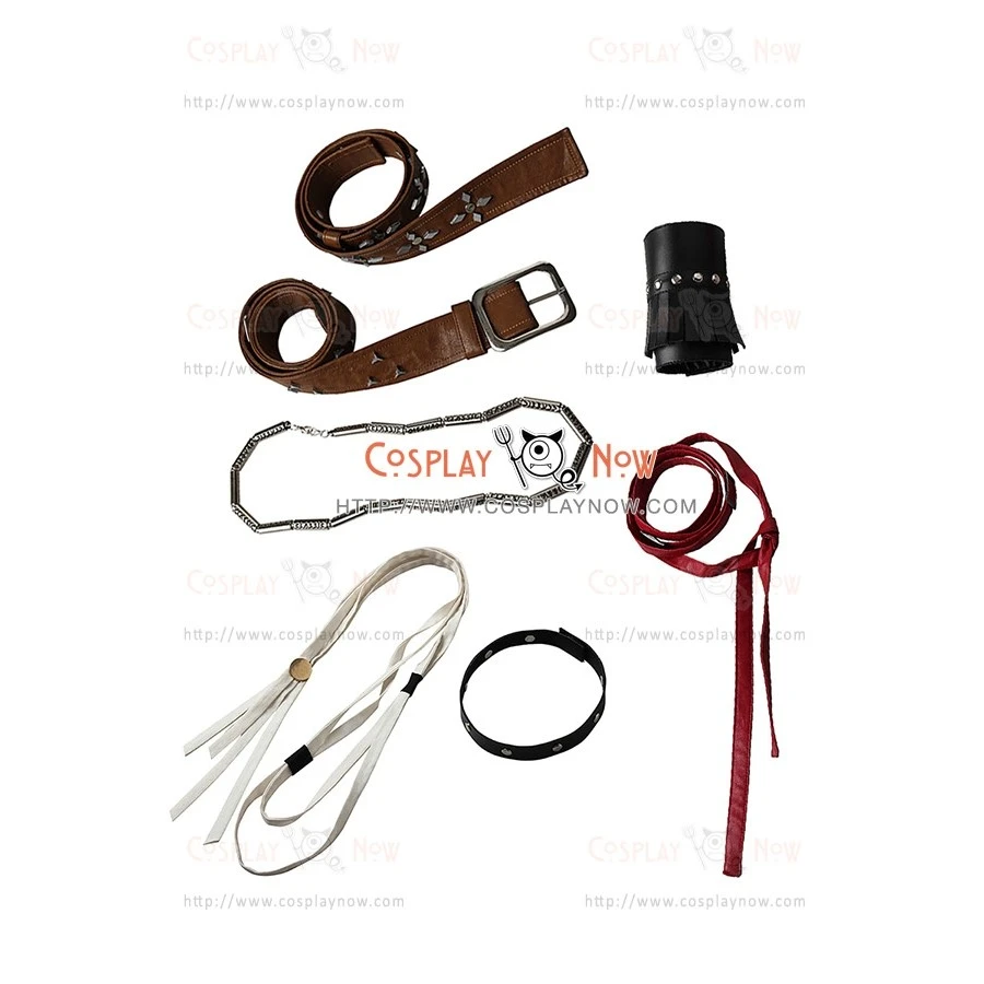 Include: Tank Top + Top + Skirt + Waist Apron + Waist Chain + Belts + Bandage + Bracer + Accessory Straps + Necklet